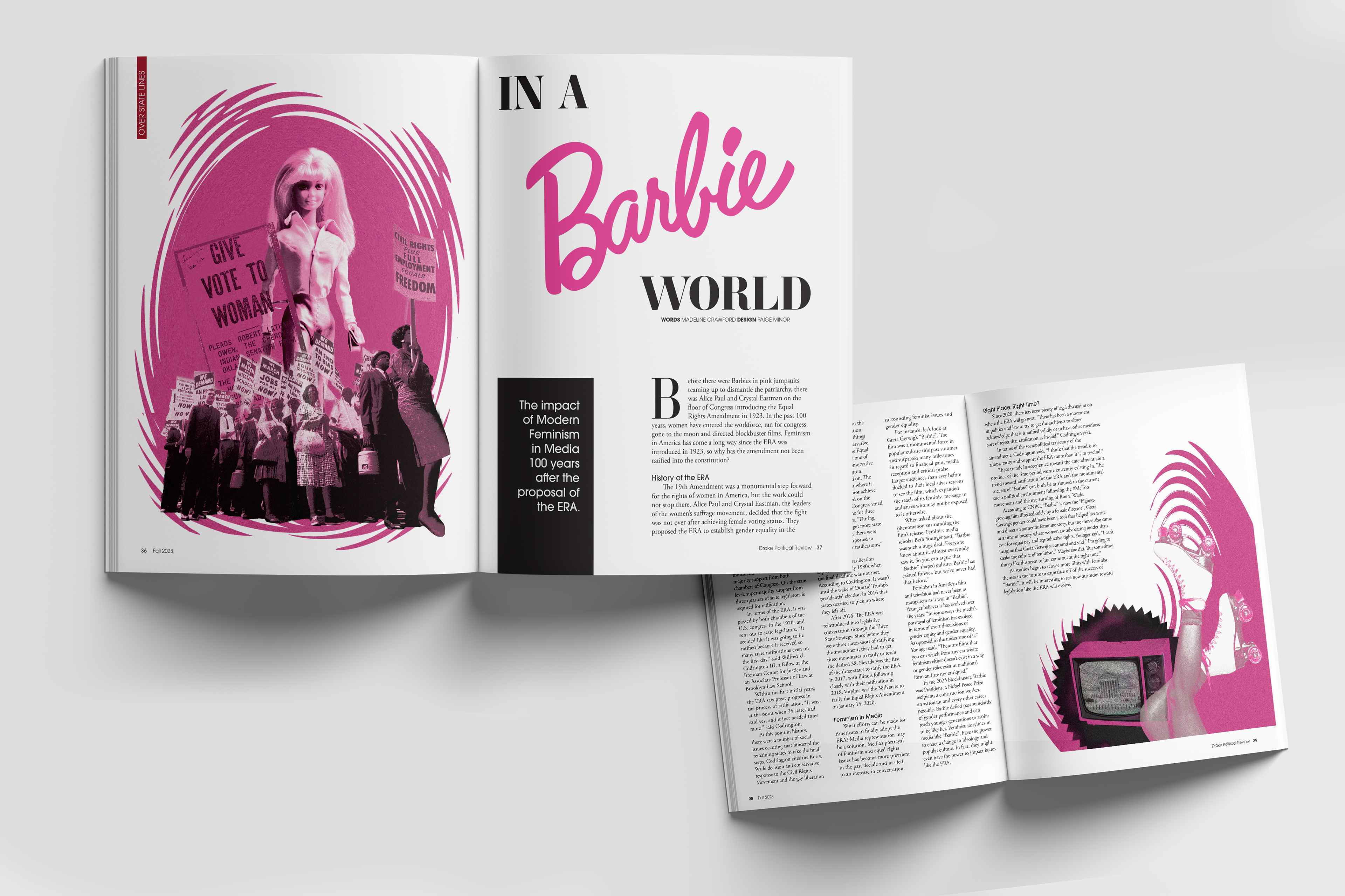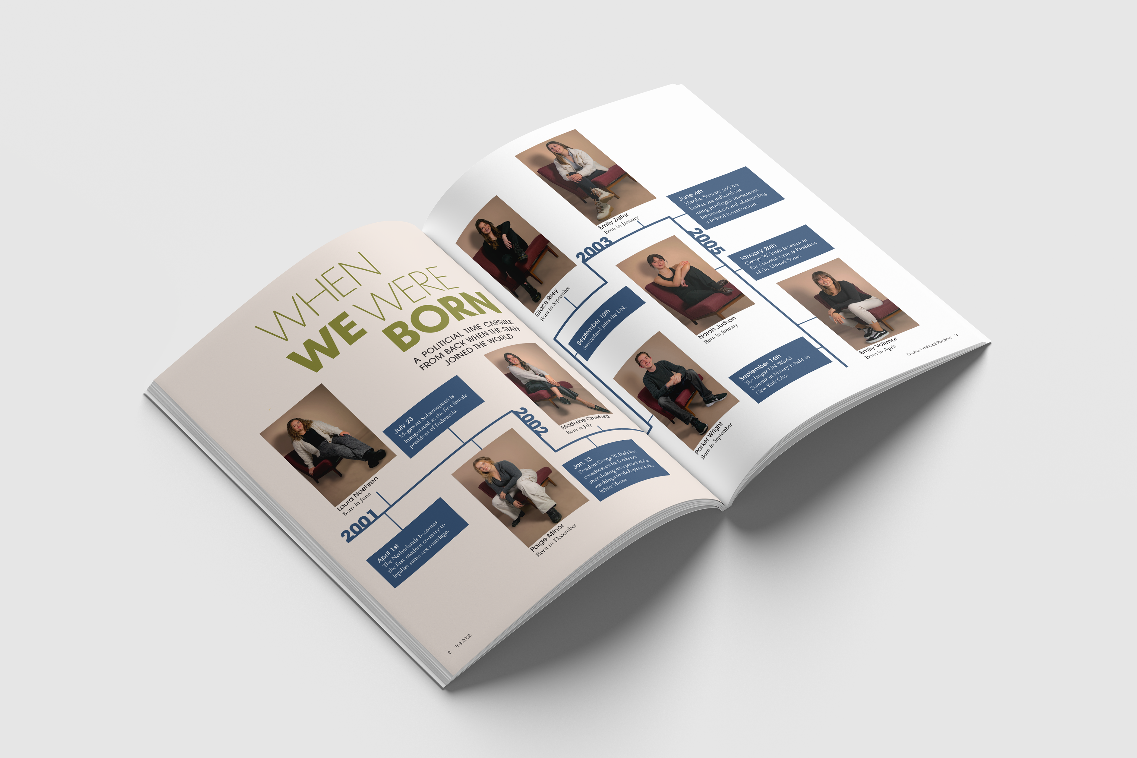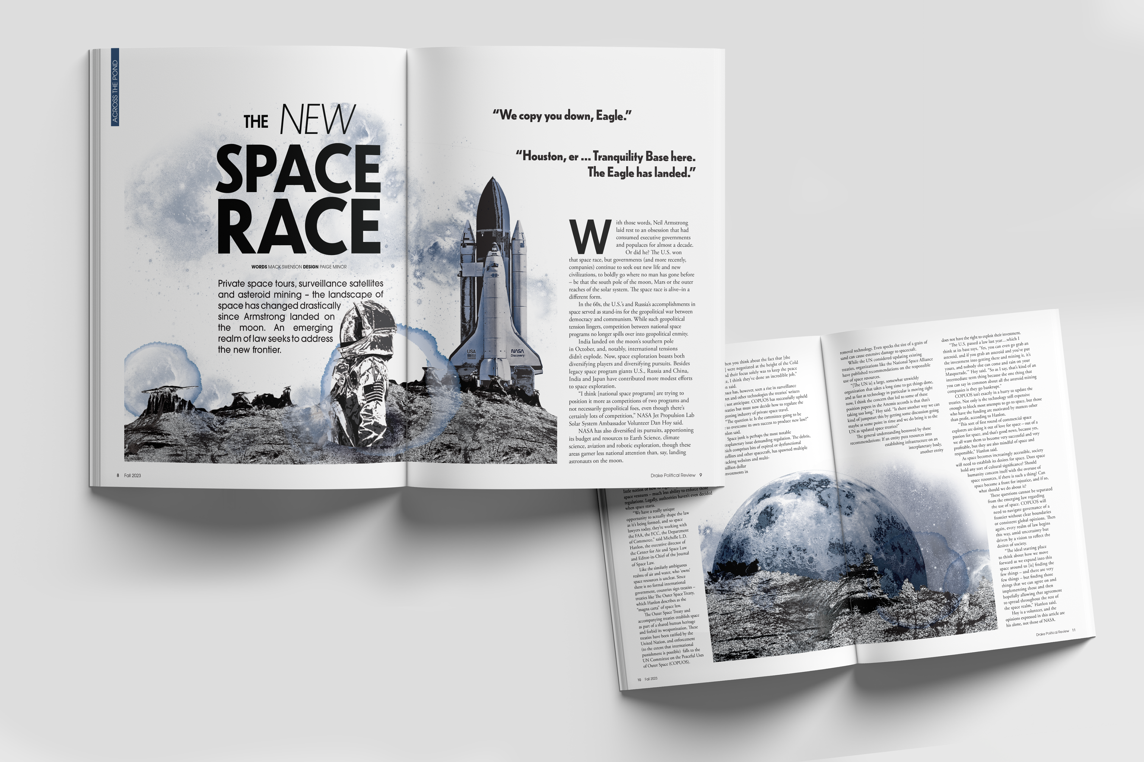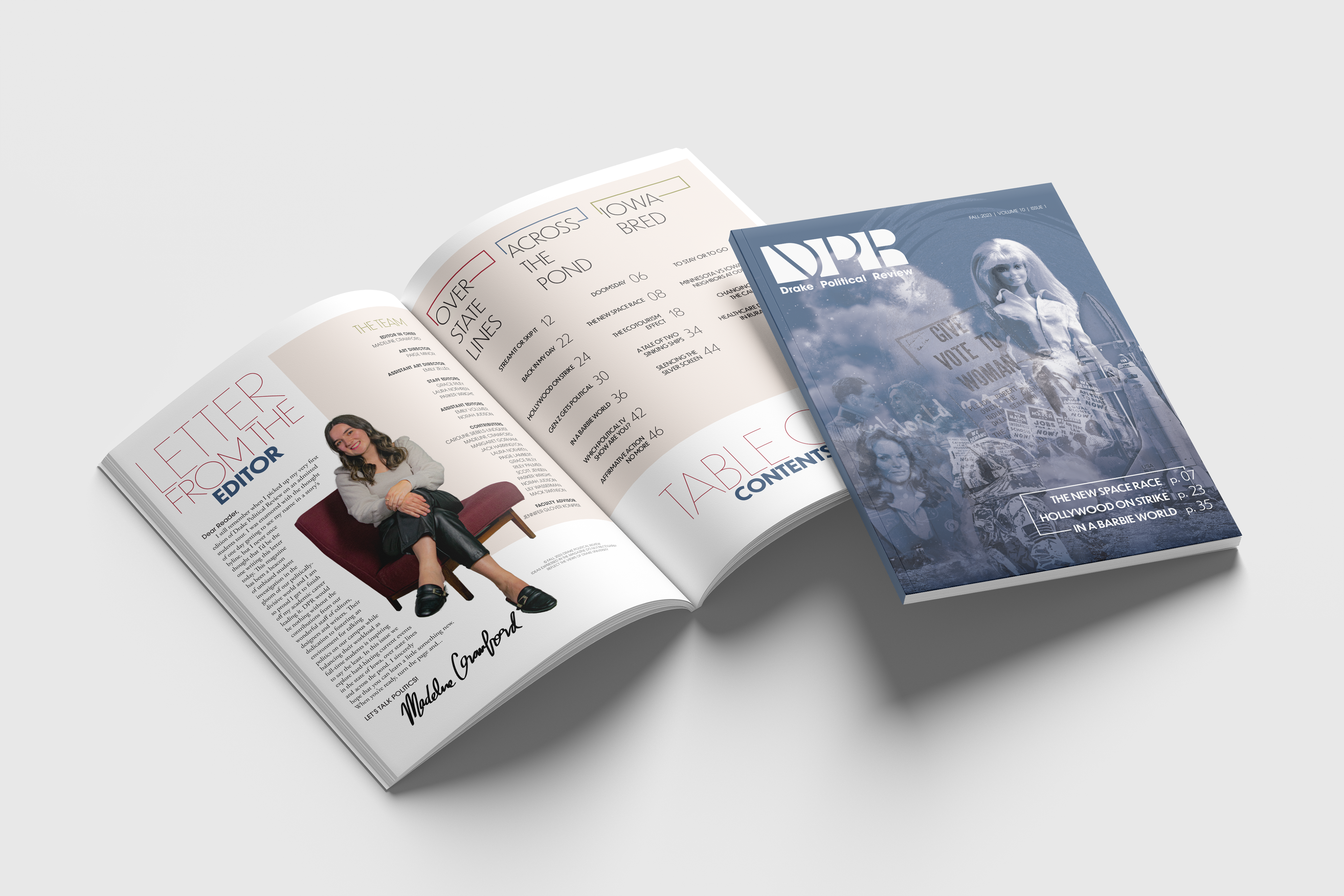 All designs are labeled with the designer's name. Those without attribution were created by me. However, in my role as Design Director, I critiqued and adjusted all designs to ensure they aligned with the theme of this publication prior to print.